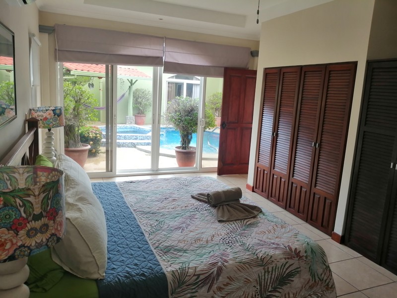 This beautiful home is located in one of our most sought after communities, just 400 yards from the beautiful beaches at Bejuco! Featuring 3 bedrooms, 3.5 bathrooms, and a large open floor plan with a pool, this home also has a single car garage, and each bedroom has its own private en suite bathroom! The living and dining rooms are one enormous open space, with sliding glass doors along the wall facing the pool, allowing in lots of natural light and allowing you to take advantage of the outdoor living space, which is key here in Costa Rica!