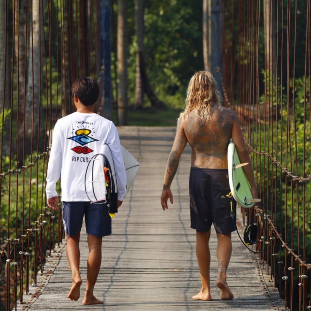 Perfectly positioned on the absolute beachfront of Mandiri Beach in Krui, South Sumatra, this resort delivers an unrivaled front-row experience to one of Indonesia’s most consistent A-frame beach breaks—just steps from the sand. Its prime location offers the best of both worlds: direct access to world-class surf while remaining only a short stroll from local favorites such as Leafy’s Café and Yoi Beach House. Despite its convenience, Villa Santai is nestled in a peaceful, private setting that feels worlds away.