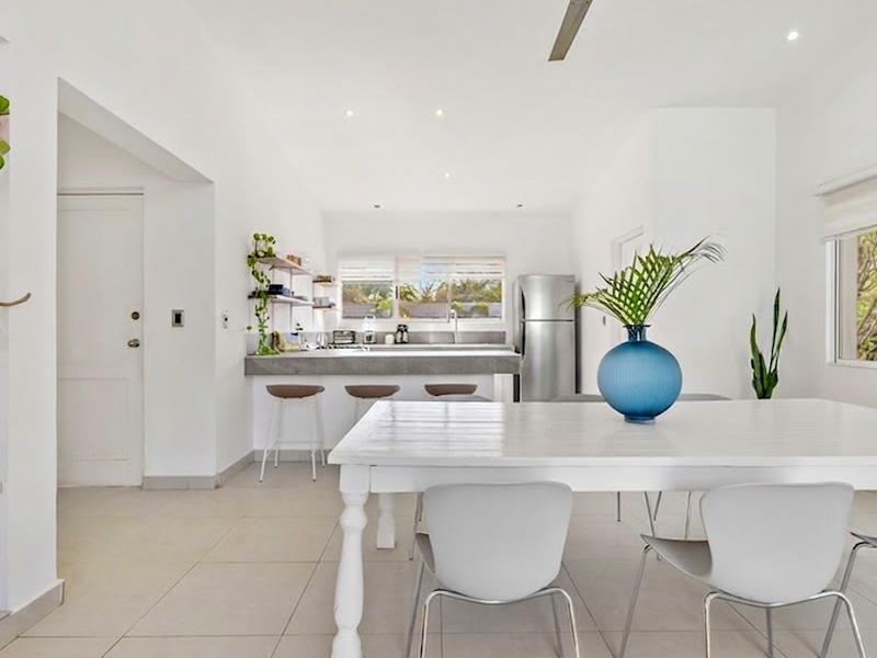 Casa Pitaya offers a practical layout that fits many types of buyers. Each of the three bedrooms includes its own en suite bathroom, while a convenient half bath adds extra functionality for guests. Because the home sits on one level, it feels easy to navigate and comfortable for everyday living. At the same time, the bright design and open feel create a relaxed coastal atmosphere.